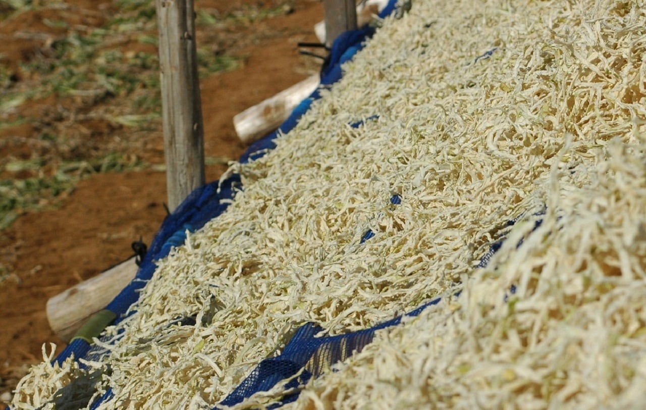 全国でも有数の冬の晴天率と、冬の風物詩「遠州のからっ風」といわれる乾いた強い風が吹くこの地域。この気候のお陰で太陽の光をたっぷり浴びた切干大根に仕上がります。
