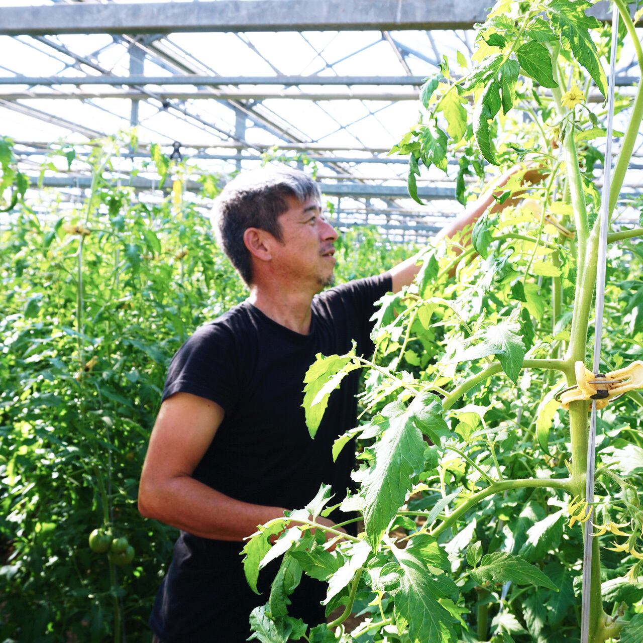 静岡県湖西市、南に臨む遠州灘からの海風、三方原台地から続く赤土土壌、そして全国でも上位の晴天率。この作物にとっては恵まれた自然環境のなかでトマトを栽培している藤井ファームさん。「野菜は薬草でなければならない」健康に育った野菜・果物を食べることは健やかな心身につながる。という信念のもと、微生物や天然ミネラルを活用し植物の生命力を高め、そして手間を惜しまずトマトに目一杯の愛情を注いで育てています。
